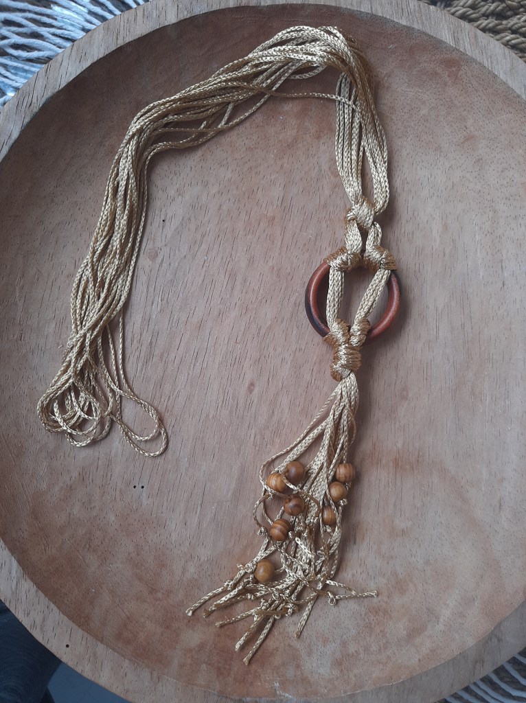 Usei contas de madeira e fio charme da Círculo.